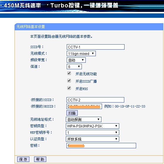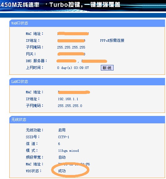 于是开始桥接,450M肯定做主路由啊,54M做副。网上资料比较乱,写什么的都有,大多是要两个路由一样,都要求开WDS。咱们买新路由的都会空出一个老路由,谁还买两个新的啊。