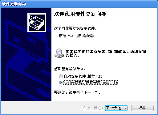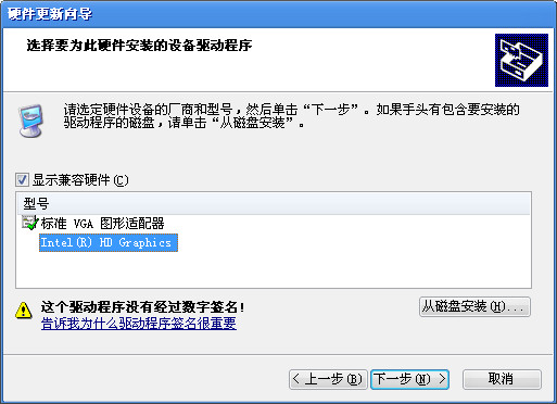 在列表中选择你的显卡,如果没有,选择从磁盘安装,浏览驱动程序